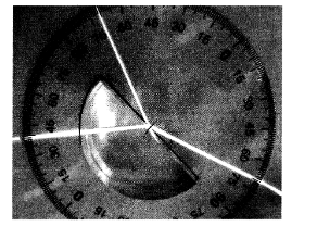 Угол преломления – угол между перпендикуляром в точке падения луча и преломленным лучом. С помощью транспортира мы видим, что преломленный луч равен градусам.
