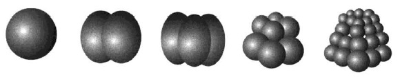 1) Изображен процесс дробления (первая стадия развития зародыша);